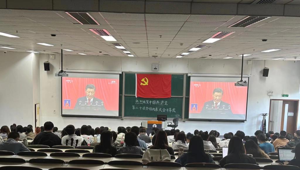 中国共产党第二十次全国代表大会于10月16日上午10时在北京人民大会堂开幕。信息公司党委组织全体师生收看开幕会盛况,聆听习近平总书记代表十九届中央委员会向大会所作的工作报告。公司党委理论学习中心组在沙河校区6号楼207会议室召开扩大会议集中收看,党委书记章宁,党委副书记方德风,党委委员李海峰、陈玉婵、唐小毅以及教工党员代表参加。员工辅导员组织两百余名员工党员、积极分子、发展对象、团员代表在沙河校区主教219集中收看。