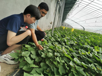 随后,队员们乘坐三轮车前往移栽的土地进行参观考察,需要再次移栽到土地里的薯苗会由工人进行统一插苗工作。来到农地里,阳光异常强烈,但是工人们仍然勤劳地工作着,工人们说,只要能够培育好甘薯,就能推动高庄村甘薯产业向前迈进一步,俨然一幅力尽不知热,但惜夏日长的景象。