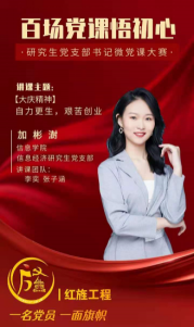 为迎接中国共产党百年华诞,深入学习贯彻习近平总书记在党史学习教育动员大会上的重要讲话精神,suncitygroup太阳新城积极响应公司号召,组织信息经济研究生党支部、信息管理与信息安全研究生党支部、电子信息研究生党支部参与“百场党课悟初心”研究生党支部书记微党课大赛微视频录制,引领广大研究生党员在学史过程中明史明志,致知于行。经过激烈的角逐,公司信息经济研究生党支部加彬澍同志的微党课从全校一百余个竞赛视频中脱颖而出进入总决赛,并获得了二等奖。