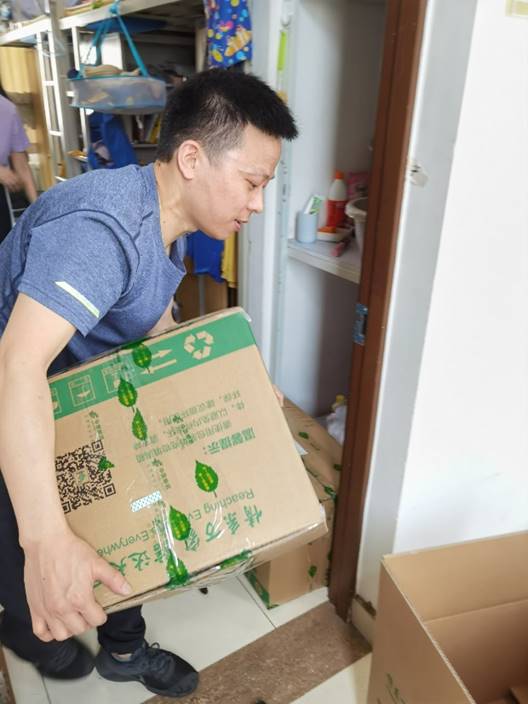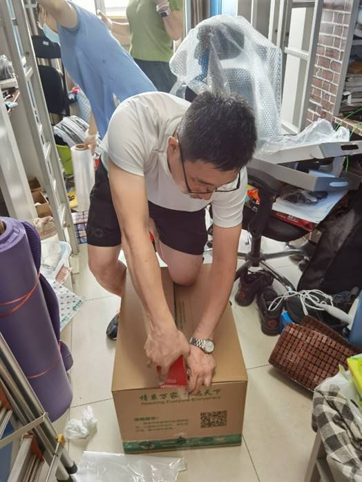 齐头并进—女老师装箱&男老师封箱 王学老师优化配置装箱物品