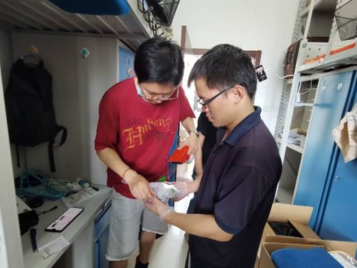 赵园老师粘贴包裹单 王睿老师在包裹箱上写明相关信息