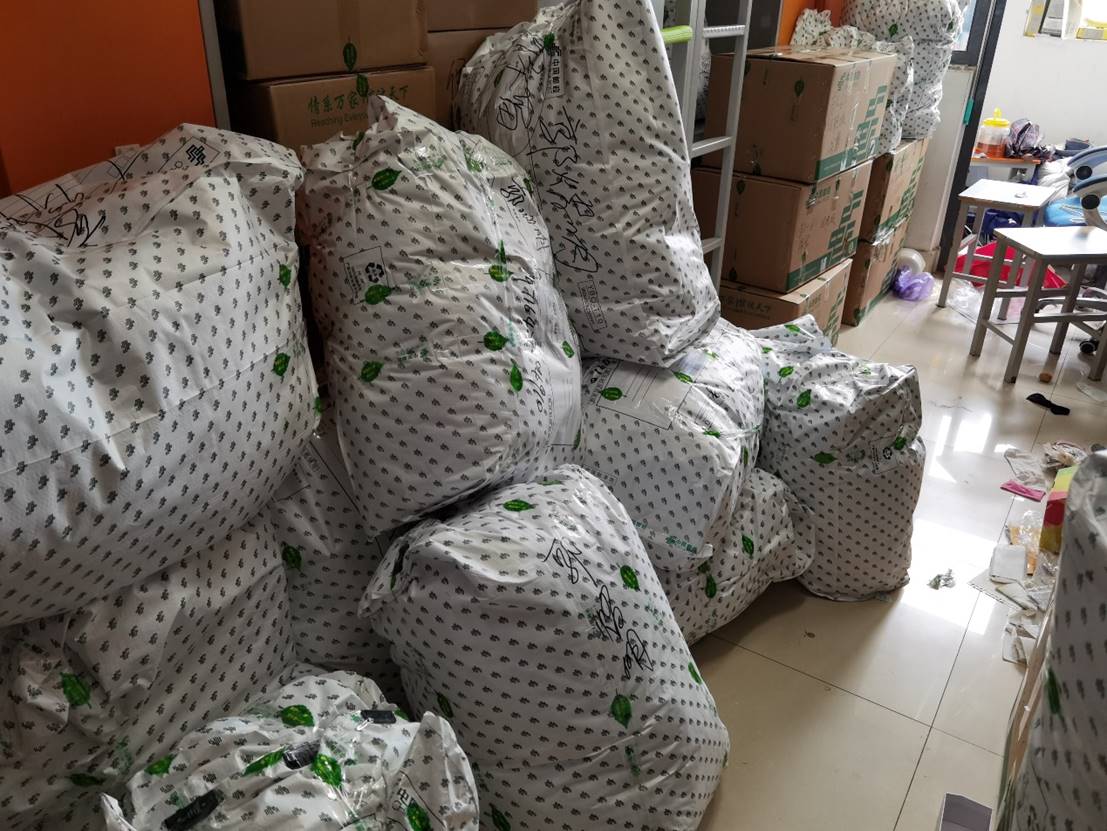 王睿和郭韦昱老师合作精心为小物件包装 韩雨欣和陈文秀老师分类装袋