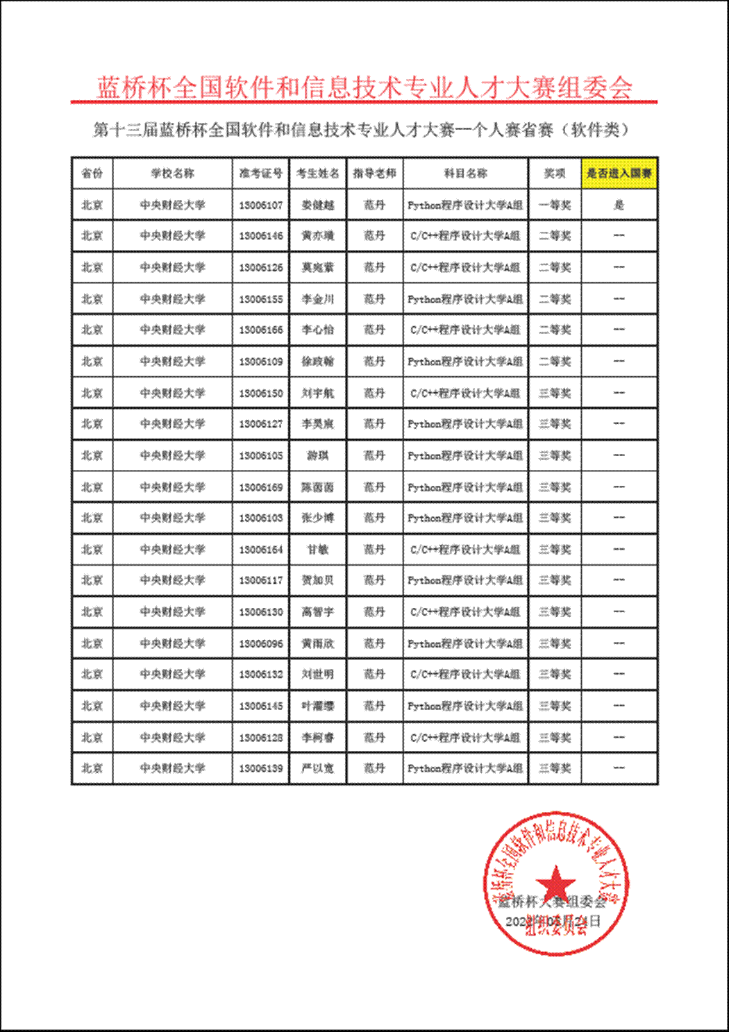 由工业和信息化部人才交流中心举办的第十三届蓝桥杯全国软件和信息技术专业人才大赛(以下简称“蓝桥杯大赛”)已于2022年6月18日落下帷幕。蓝桥杯大赛分为省赛和全国总决赛两阶段,公司共50名学子参加了本届比赛。在suncitygroup太阳新城范丹老师的指导下,共有19名学子斩获北京市一、二、三等奖,其中一等奖选手suncitygroup太阳新城19级本科生娄健越入围全国总决赛,并最终喜获全国总决赛一等奖。
