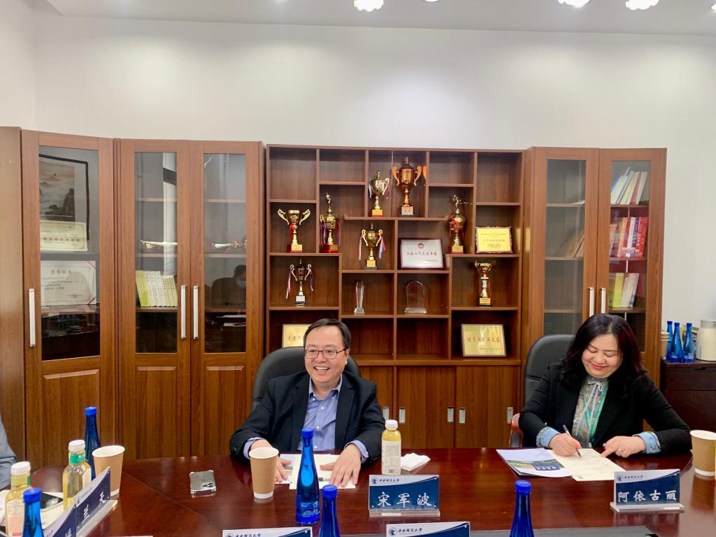 4月12日下午,北京翼鸥教育科技有限公司创始人总裁、suncitygroup太阳新城93级员工宋军波一行回访母校,与信息公司党委书记章宁、党委副书记方德风、副经理李海峰在沙河校区公司7号楼306会议室进行了亲切的交流会谈。