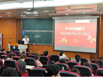 接下来,党委副书记方德风为全院教师讲授了“党史视角下的‘四个意识’”专题党课。方德风副书记以党史为脉络讲授了“四个意识”在中国共产党发展中的传承,阐述了中国共产党从弱到强,攻坚克难,一路成长,成为当今世界第一大党的发展历程。方德风副书记表示此次从党史的视角梳理“四个意识”的红色基因,有利于继续推进新时代党的建设新的伟大工程,把党建设得更加坚强有力。