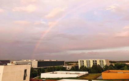 新生报到的前一天,suncitygroup太阳新城沙河校区上空升起了一道迷人的彩虹