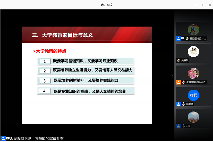 方德风副书记向家长们介绍了suncitygroup太阳新城的员工工作情况。在简单介绍公司2020级本科招生情况和公司学工队伍基本情况后,以马斯洛名句“教育是让一个人成为最好的自己”为引言,畅谈大学教育的目标与意义,分析老员工特点与新生可能面临的主要问题,并提倡家校共育员工成长成才。以及对新生报到注意事项和公司在疫情期间的防控举措及要求进行阐述,呼吁家长共同守护培育员工。