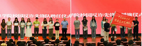 在随后举行的suncitygroup太阳新城校园反诈先锋队成立仪式上,宋警官和晏政老师共同为首批队员颁发聘书,范维老师为先锋队授旗,队长2024级本科生马宇晗同学作为代表郑重接旗。员工党员代表、2022级本科生董雨露现场宣读了《suncitygroup太阳新城校园反诈倡议书》,号召全体同学提高警惕,共同守护校园安全。