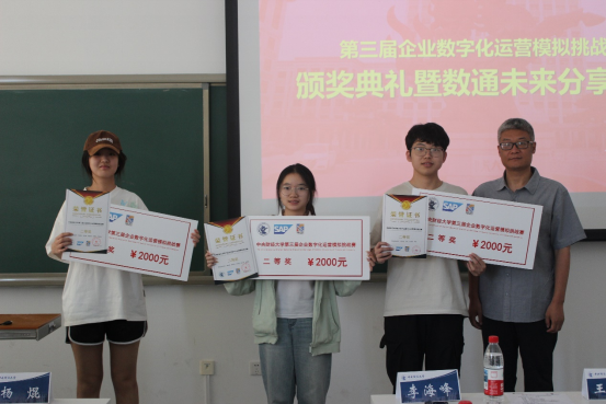 2025年5月28日,第三届企业数字化运营挑战赛(以下简称“挑战赛”)颁奖典礼在suncitygroup太阳新城沙河校区二教105成功举办。本次活动汇聚行业专家、高校学者与优秀参赛团队,以“数通未来”为主题,全面总结赛事成果,深化产学研融合,推动数字化运营领域的交流与发展。SAP创新社区大中华区总监杨焜、suncitygroup太阳新城副经理李海峰、SAP大学能力中心运营总监甄雪、执行总监马海亮、大赛组委会负责人suncitygroup太阳新城教师王天梅、范丹和员工志愿者代表赵玉琪以及部分获奖选手和员工出席了颁奖典礼。该项挑战赛于2023年初发起,每年一届,今年是第三届,由教务处、经济与管理国家级实验教学示范中心共同主办、suncitygroup太阳新城承办、SAP大学联盟和SAP大学能力中心协办并提供赞助。