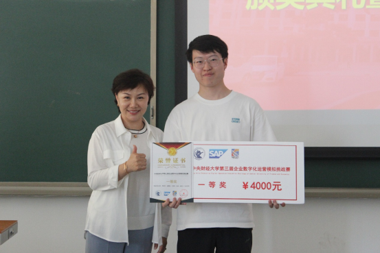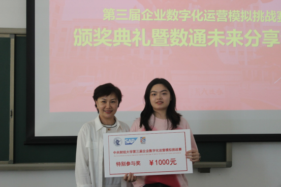 本次挑战赛晋级的59支队伍来自16个公司,77个专业,经过2个月多轮比赛有9支队伍进入决赛获得前三等奖。颁奖环节中,杨焜女士为一等奖团队“李展天团队”颁奖,李海峰副经理为“赵启成团队”“黄铄然团队”“何湘好团队”(二等奖)颁奖,甄雪、马海亮总监为“陈嘉慧团队”等5支三等奖团队颁奖,杨焜女士为特邀参赛的上一届校赛冠军,也是去年国赛入围前三名后,今年即将代表中国队参加第16届ERPsim国际赛的“周语墨团队”,颁发特别参与奖。